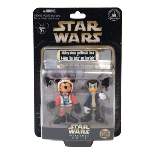 This Special Limited Edition action figure set created for Star Wars Weekends 2014 features Mickey Mouse as Luke Skywalker, and Donald Duck as Han Solo.
