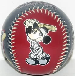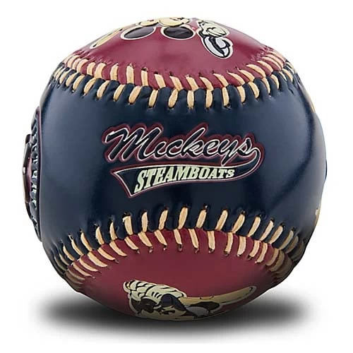 Pitch a winner every time with this colorful Mickey Mouse baseball featuring embossed vintage style graphics. Striking team colors and logos for ”Mickey’s Steamboats” decorate this real athletic quality baseball direct from the Disney Parks