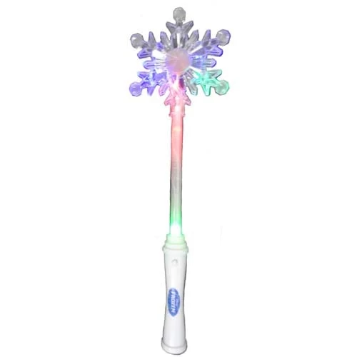 Spark her imagination with the Magical Snowflake Light-up Frozen Wand. Topped with a dazzling snowflake. Press the button and the clear snowflake lights up in multi-colored lights. Press it again and they twinkle.
