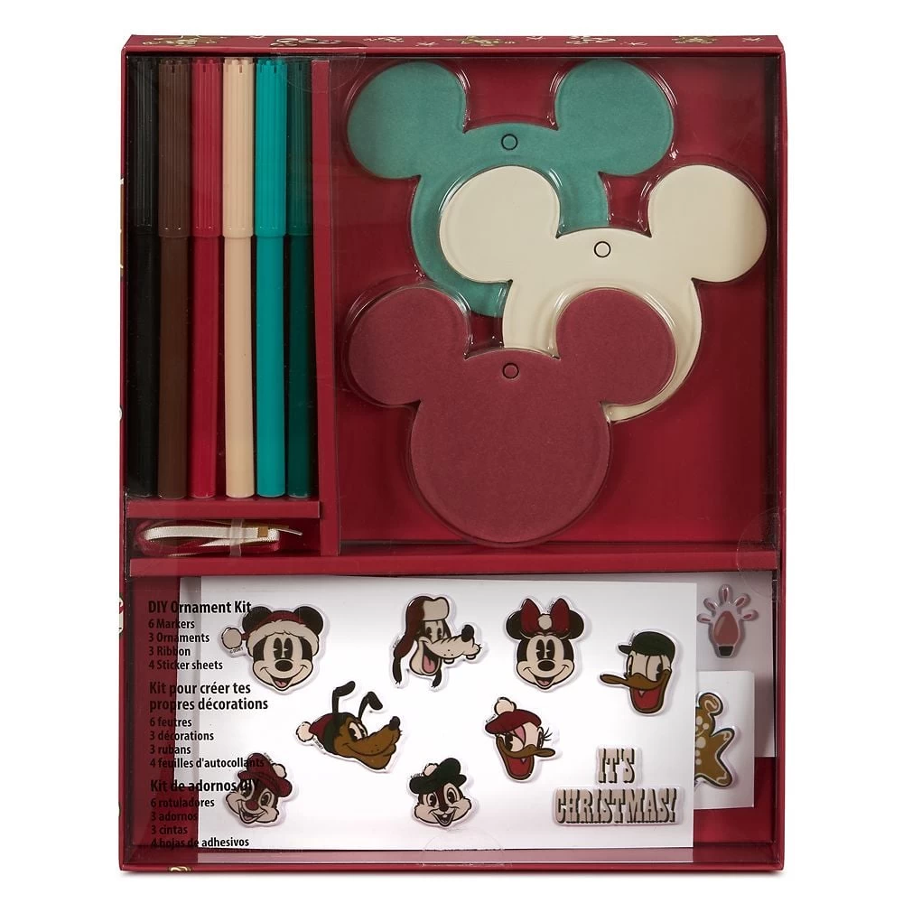 Let your little ones get into the holiday spirit by creating their own Christmas tree ornaments with this fun set. It includes six markers, three ribbons, three Mickey icon ornaments, and four sticker sheets.