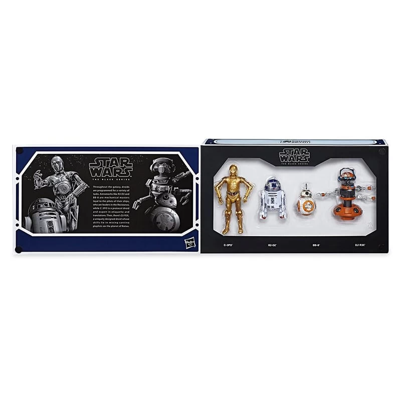 - Set includes four action figures: R2-D2, BB-8, C-3PO, and DJ R3X