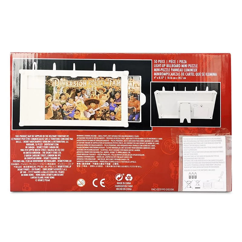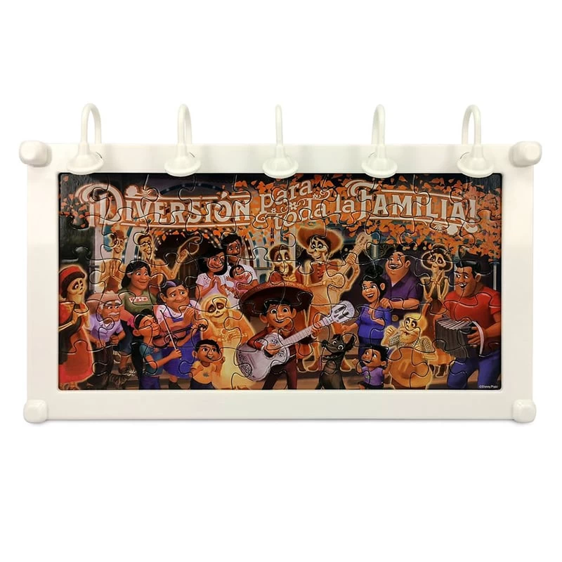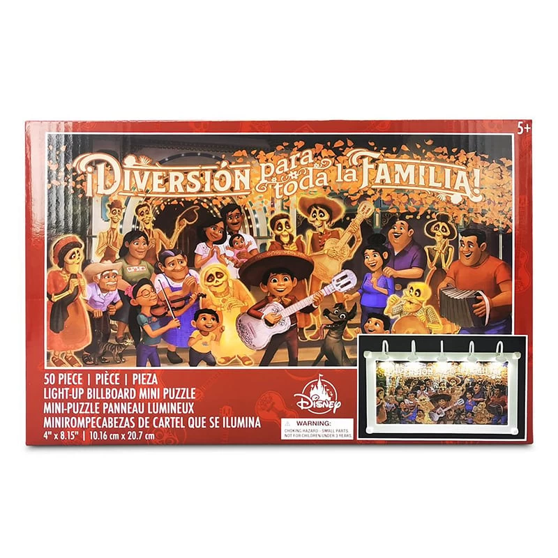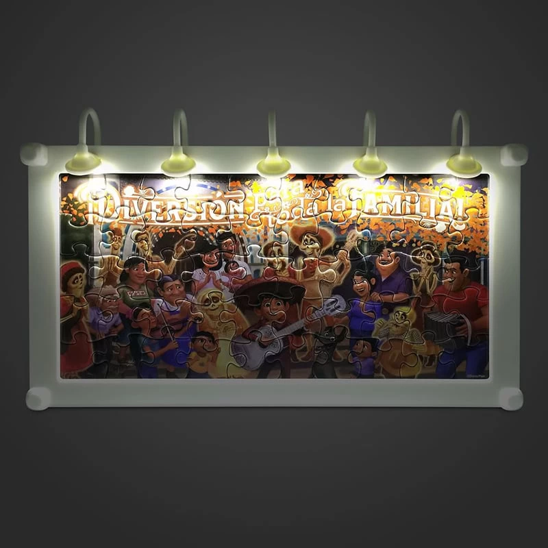 Light-up your living room with this Pixar Pier-inspired décor! Assemble the 50-piece Coco-themed puzzle in a tray that slides into the easel-back display frame. The overhanging lights will make you feel like you’re strolling through Disney California Adventure. ”Diversión para todo la familia!”