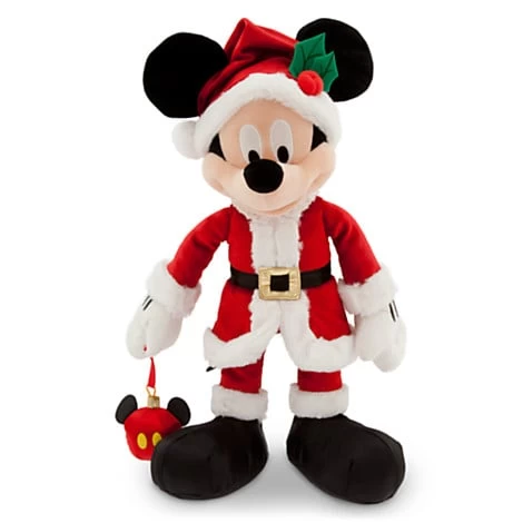 Merry Christmas from Santa Mickey Mouse! This Santa Mickey Plush has little sparkles in his suit and a Santa Hat with Holly decoration! Â He holds a plush ornament in one hand.