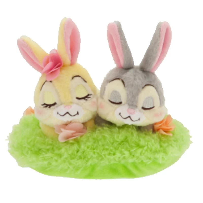 - Set of two mini Thumper and Miss Bunny plush on shaggy Easter grass pillow