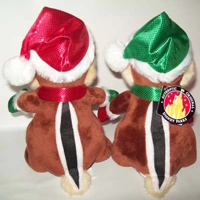 This is the Official 2009 Christmas Plush, Santa Chip & Dale Set. They have official emblems, sewn into the bottom of their feet, Signifying Authenticity. You will receive BOTH PLUSH, One Chip and One Dale, attached as shown. Can be separated easily by clipping the plastic tag tie and removing it from the fabric of both plush.