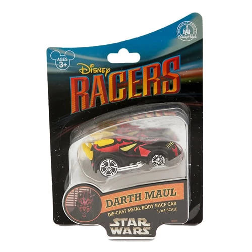 Don’t get up in his grill! This Darth Maul-inspired car features top and rear spoilers similar to the spikes on the Sith’s own spiny skull. Send him into lightspeed against the other Star Wars Disney Racers, sold separately.