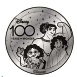 - Says ”Disney 100 Years of Wonder Walt Disney World” on one side and ”Disney 100 Years of Wonder” with the character on the other