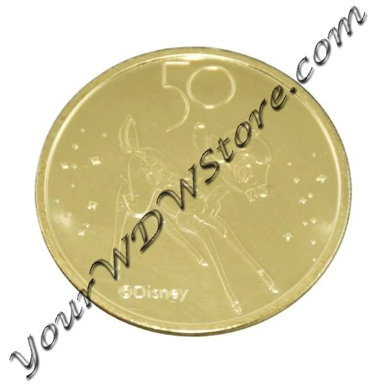 - Says ”The World’s Most Magical Celebration Walt Disney World” on one side and ”50” with the character on the other