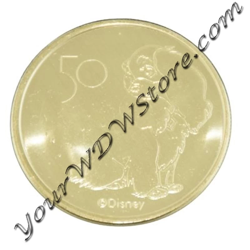 - Says ”The World’s Most Magical Celebration Walt Disney World” on one side and ”50” with the character on the other