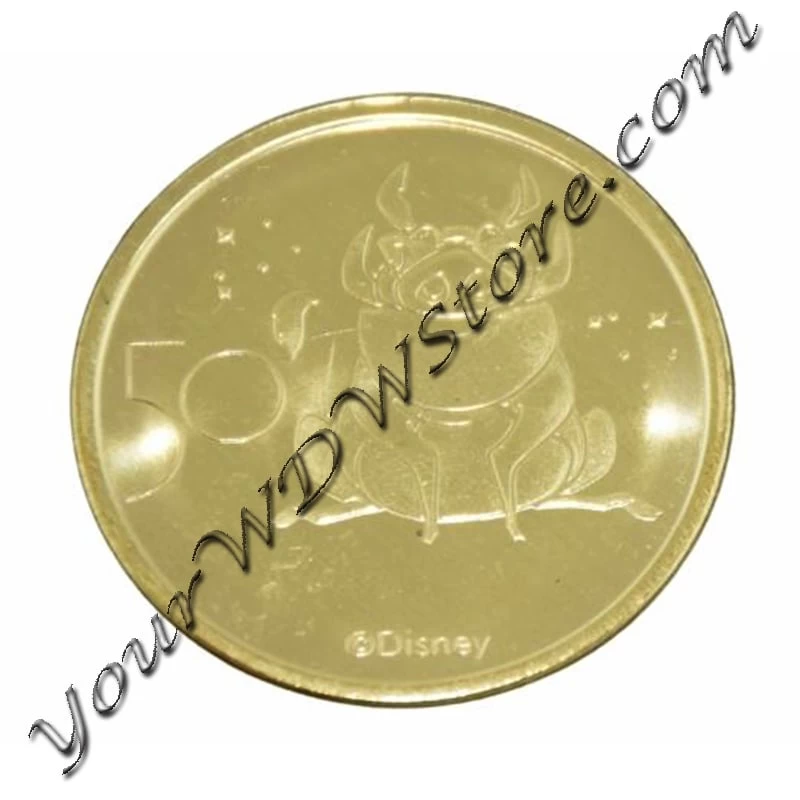 - Says ”The World’s Most Magical Celebration Walt Disney World” on one side and ”50” with the character on the other